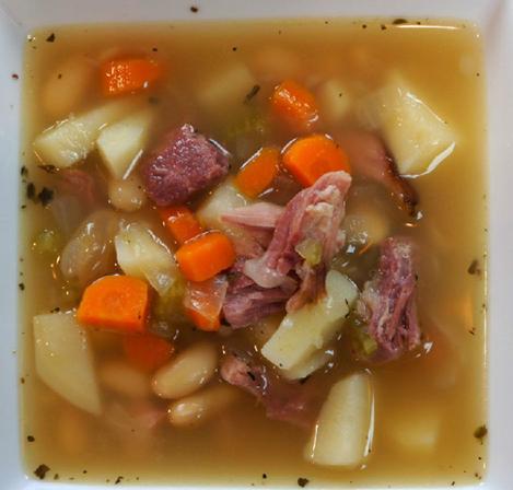 Take ham shanks out of the pot and allow for them to cool for a few minutes. Remove the meat from the bone and place meat back into the pot along with the cannelloni beans, discard the bones. Let the soup simmer for an additional hour. Taste and add in the appropriate amount of salt and pepper to your liking, serve and enjoy!