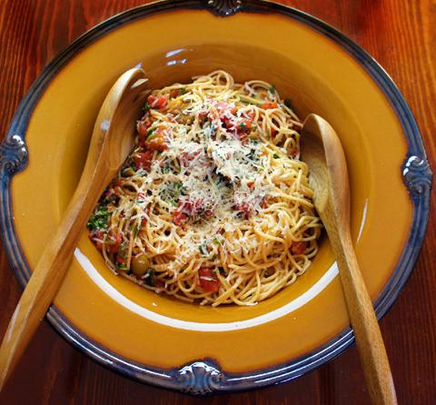 Pasta Puttanesca is an Italian dish that is packed with flavors of tangy, spicy and saltiness. This recipe is debuting arugula - a spicy leafy green that is at its peak flavor during the spring months.